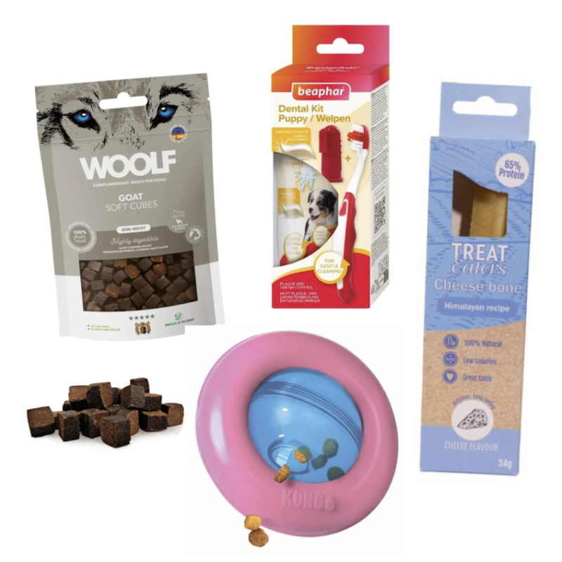 Tandplejegodbidder: Tandplejegodbidder hjælper med at holde din hunds tænder rene ved at fjerne plak og tandsten mens de tygger. De er ofte designet til at have en speciel form eller tekstur, der fremmer tandrensning samtidig med, at de har en god smag.